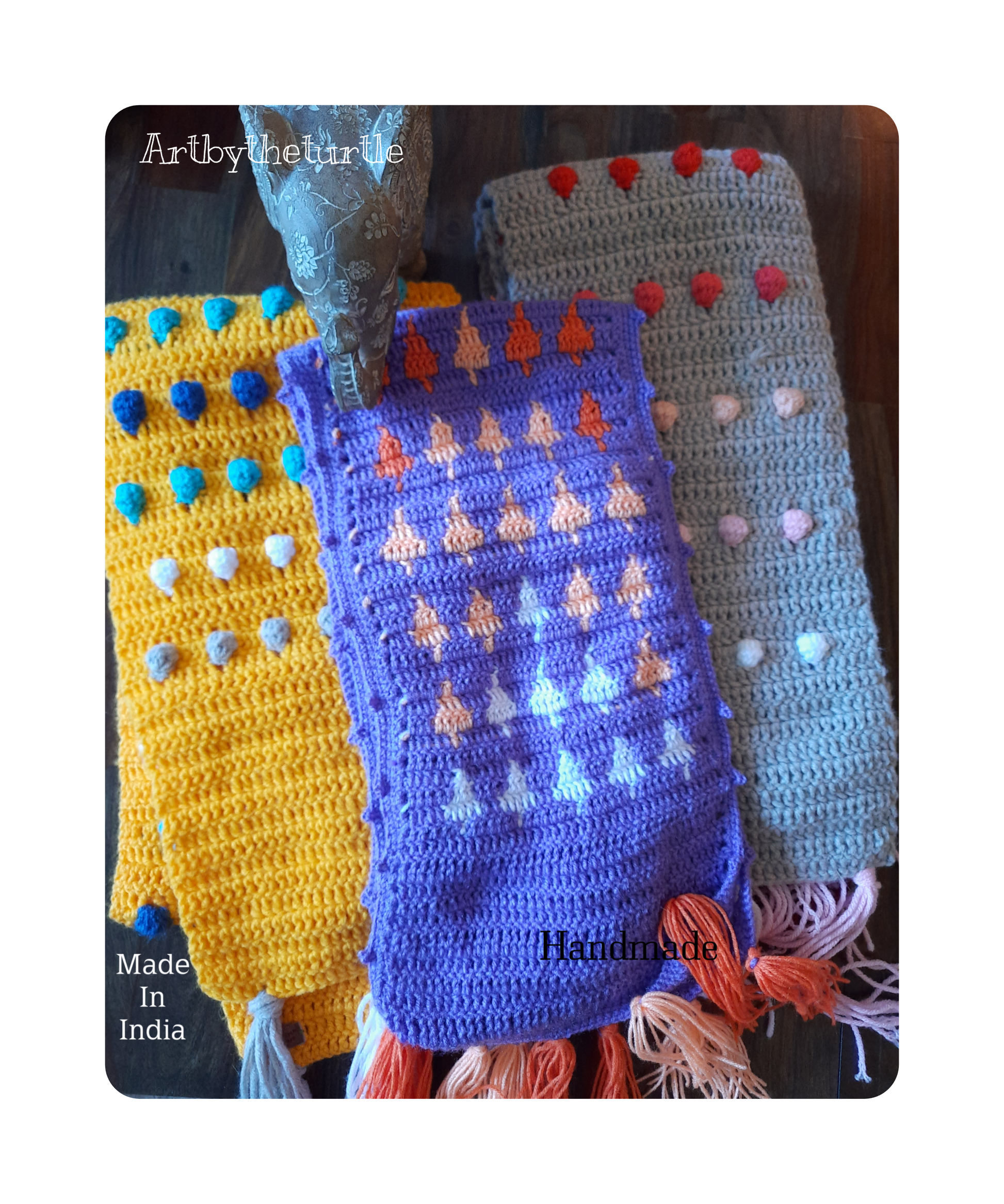 Winter is here in all its freezing glory. So. we thought we should get some of our trademark mufflers ready. These are cozy, warm and bright. Just the combination for keeping the winter blues away. What's even better is that they are 100% handmade!